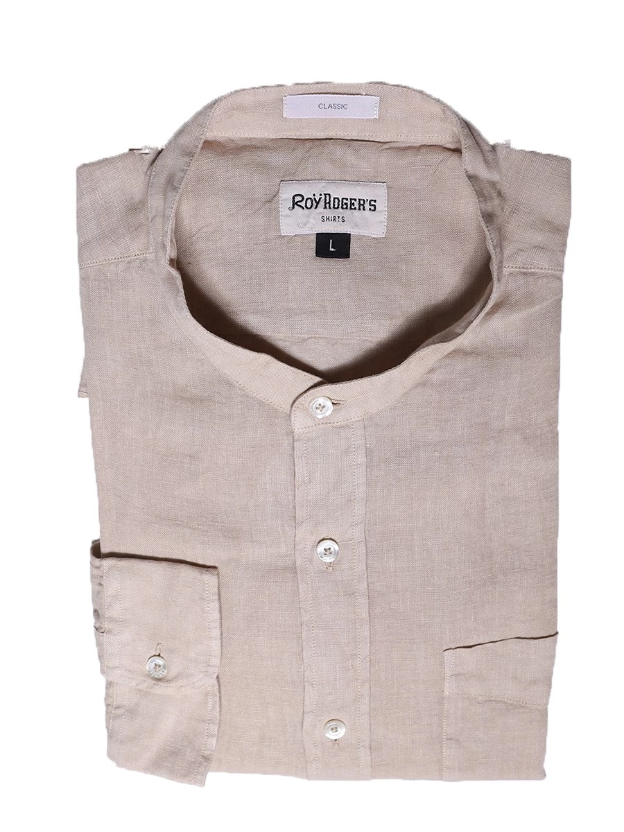 Camicia Roy Roger's Corey 100% Lino Coreana. Questa camicia con collo alla coreana è perfetta per ogni occasione d'uso, anche sotto una giacca formale. La vestibilità è regolare. Lavare a 30 non stendere al sole, stirare a ferro tiepido a rovescio. Vestibilità regolareProdotto Made in Italy