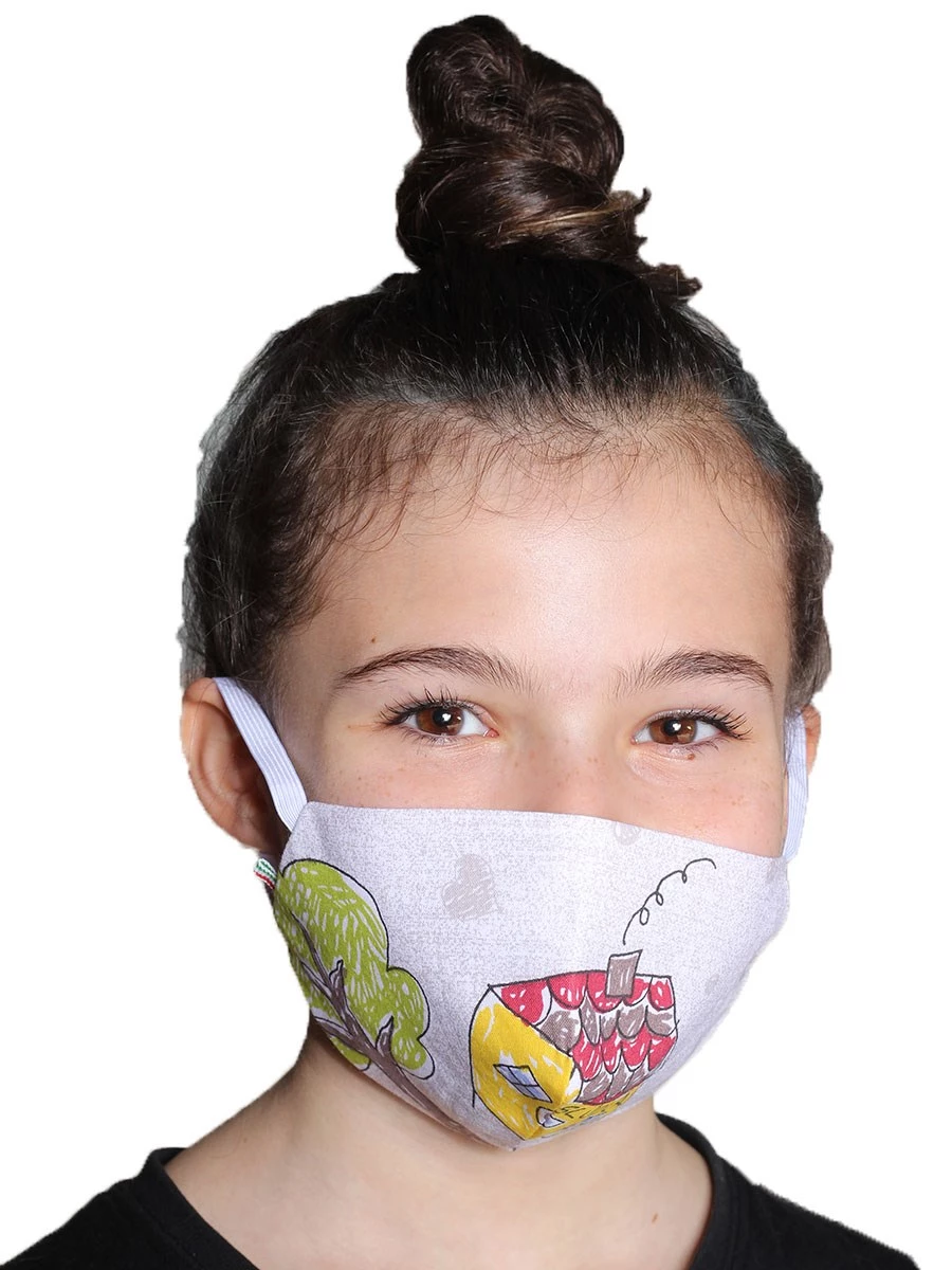 Mascherine filtranti PER BAMBINI in Cotone 100% Grammatura: 133 gr/mq. Questa mascherina ha una tasca filtro in Tnt ricambiabile. Cotone stampato fresco, ideale per l'estate.