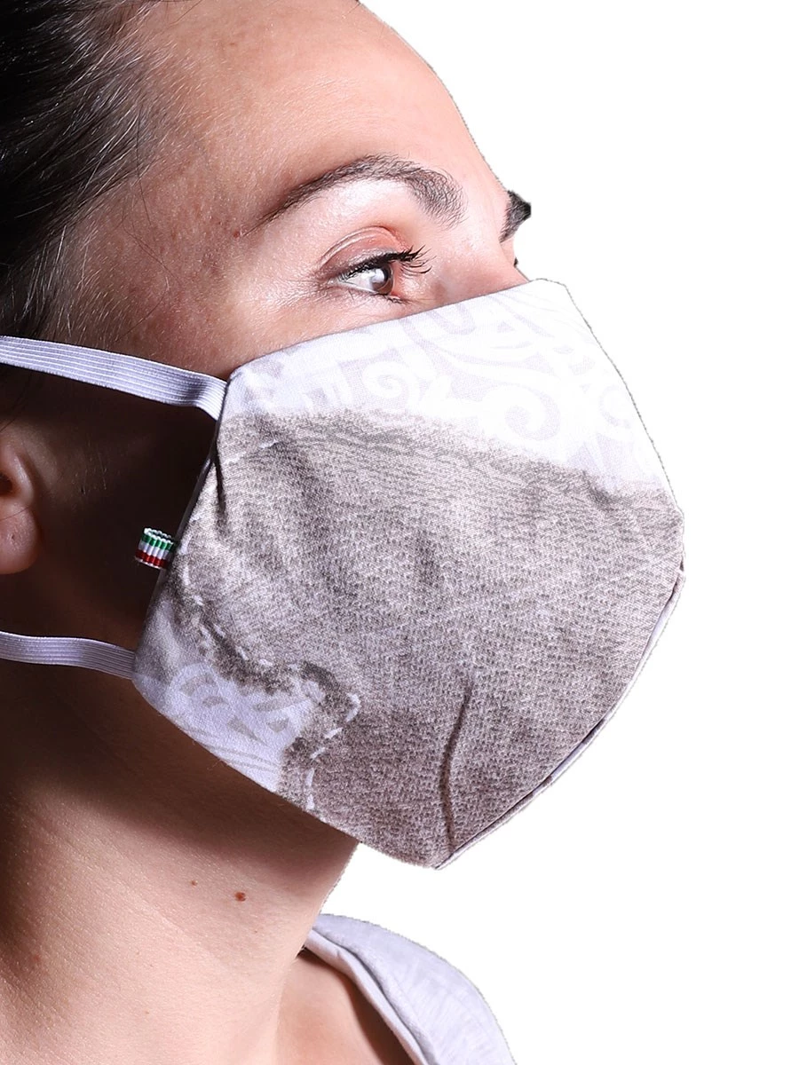 Mascherine filtranti in Puro Cotone lavabile Grammatura: 133 gr/mq. Modello a becco. Con tasca filtro in Tnt ricambiabile. Cotone stampato fresco e confortevole al tatto, ideale per l'estate.