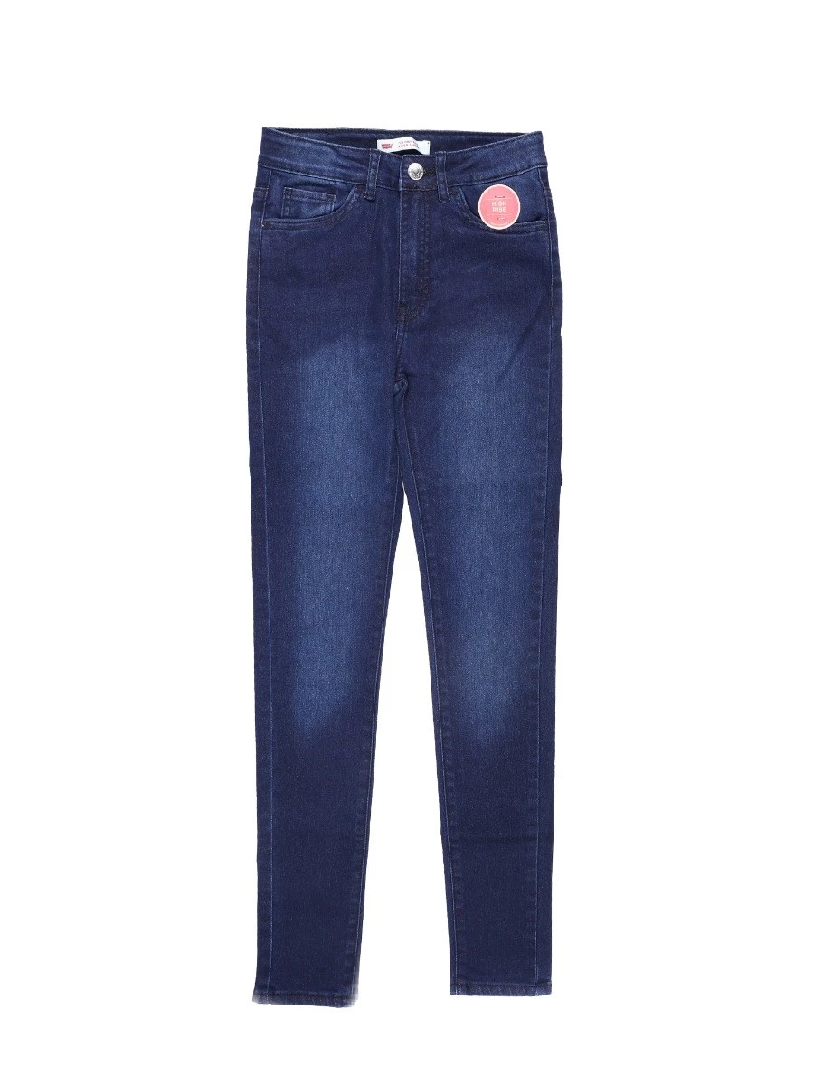 Jeans Levi's Kid 4E4691-K6T-720. 78%Cotone 21% poliestere 1% Elastene . Jeans skinny cinque tasche celeste denim, con chiusura con bottone e zip, sulla parte anteriore e vita regolabile grazie agli elastici interni con bottoni. E' decorato con iconico patch logato, sulla parte posteriore . E' realizzato con bottiglie di plastica riciclate.