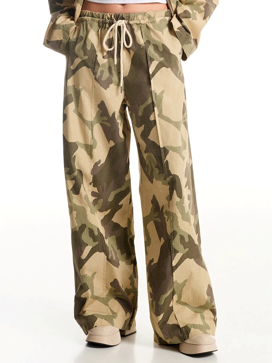 Realizzati in tessuto cotone con stampa militare. Gamba larga.