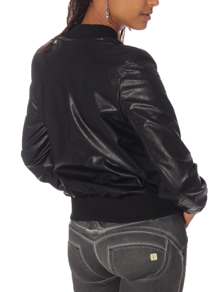 Giubbotto 6Hi Nexive in Ecopelle foderato in Retina. Perfetto per ogno occasione d'uso questo bomber in ecopelle. Da indossare con i jeans ma anche sopra un abito elegante. Adatto per tutte le stagioni è un ever green che non può mancare nel tuo armadio!. 100% Poliammide ewcopelle fodera in retina traspirante 100% Viscosa Lavare a 30 gradi a mano, non stendere al sole, non usare asciugatrice, non stirare. La taglia Small misura: Spalle cm 38, Circonferenza seno cm 98, lunghezza totale cm 59, lunghezza manica cm 59. Le altre taglie hanno una differenza di circa 2 cm. MADE IN ITALY.