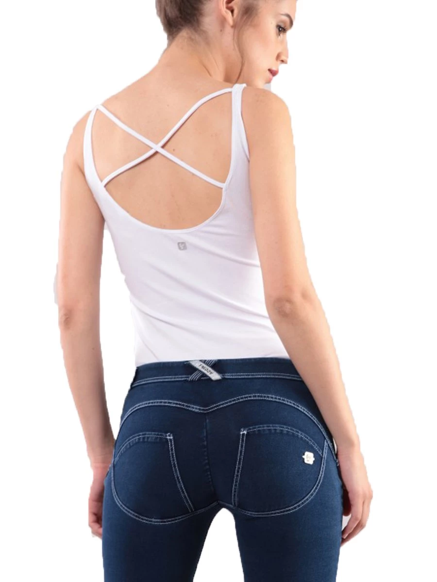 Body Freddy S8-TPW-WB04N00-JES. Maglietta canottiera a body, perfetta per i jeans, ideato per essere l'abbinamento ideale dei pantaloni WR.UP®, il capo icona Freddy. Aderisce perfettamente al corpo. Con scollo profondo sulla schiena e doppie spalline90% Cotone 10% Elastene. In Tessuto: Jersey Stretch Rivenditorre autorizzato FREDDY originale