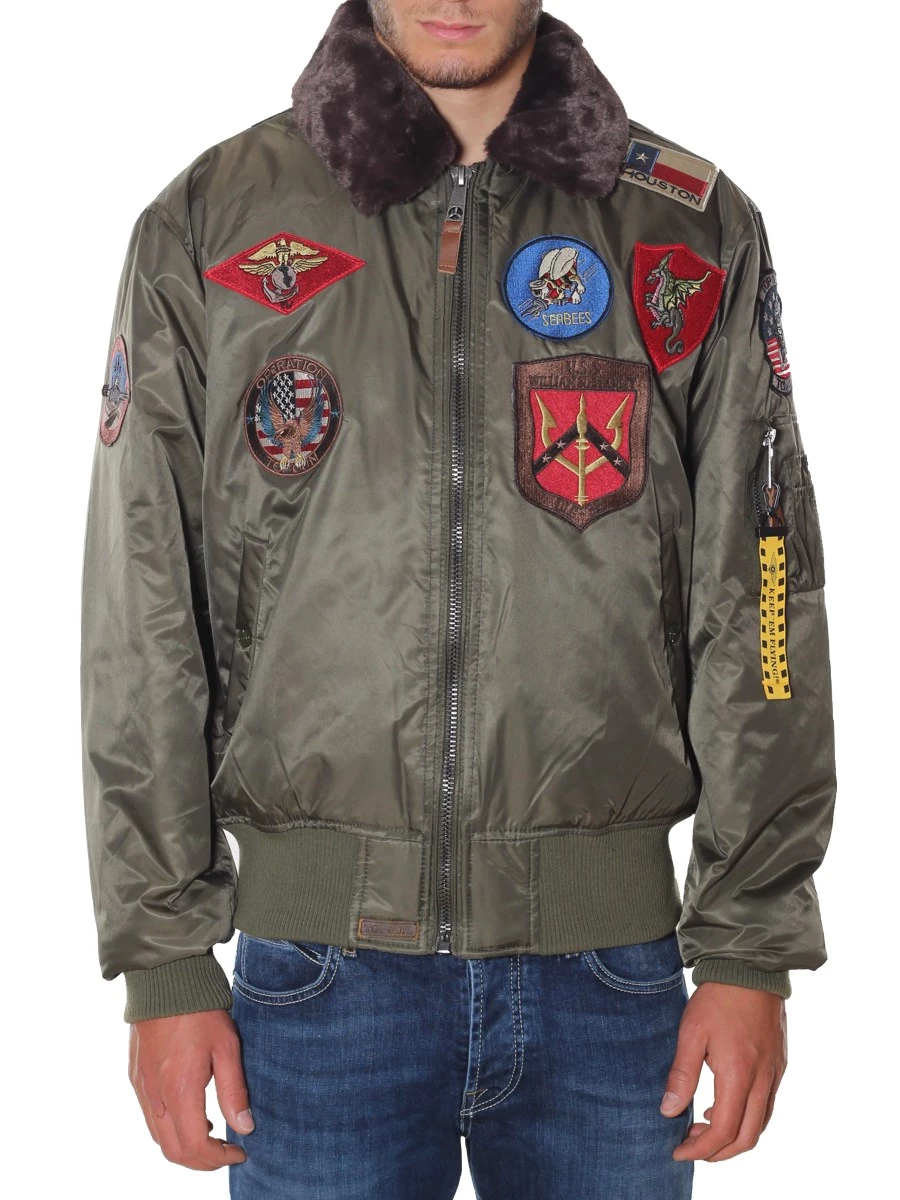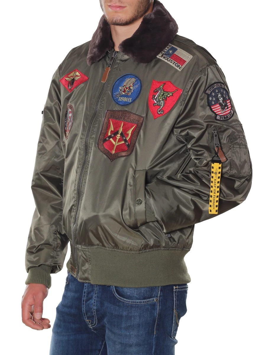 Giubbotto Top Gun Bomber in Nylon Patch Collo Pelliccia estraibile 51669. Il Top Gun® MA-1 originale con un tocco più vintage grazie ai patch di volo originariamente progettati da Top Gun. La giacca bomber MA-1 è ispirata alla giacca da volo ufficiale indossata dai piloti e dall'equipaggio della squadra aerea e militare della US Air Force negli anni '50. Durante i mesi più freddi, è possibile chiudere la giacca con zip e avere una protezione sufficiente contro le condizioni di freddo. La fodera arancione è un certificato di origine. Vestibilità regolare: true to size. Imbottitura in ovatta: Lavabile in lavatrice. Patch originali assortiti